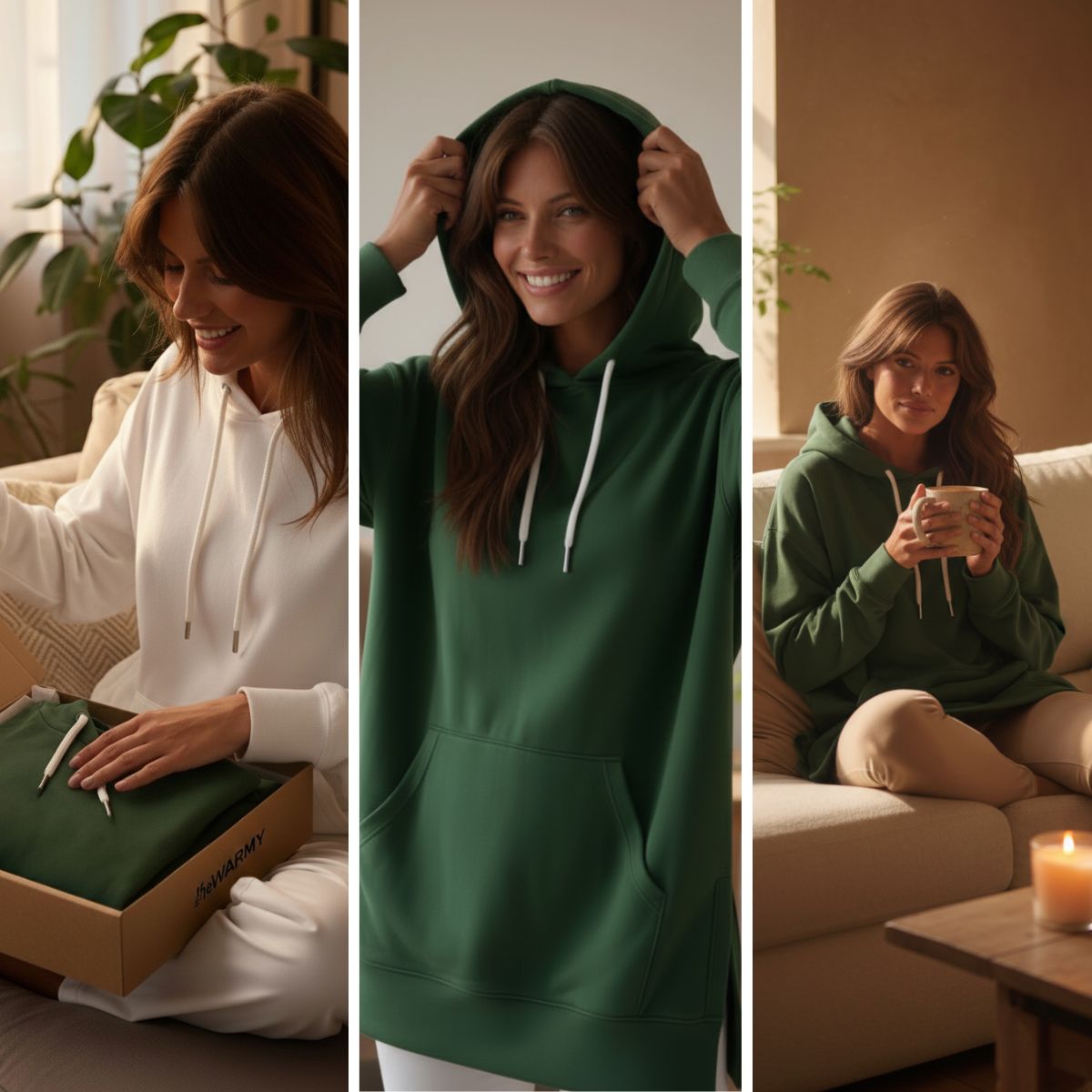 Finally, a hoodie that covers you properly. Designed longer than standard hoodies, this oversized style combines a 100% cotton outer with a blanket-soft interior. Whether you're working from home, running errands, or just need something warm that doesn't ride up, this is it. Throw it on and look put-together in seconds. Style it up with boots, down with leggings, it works either way.